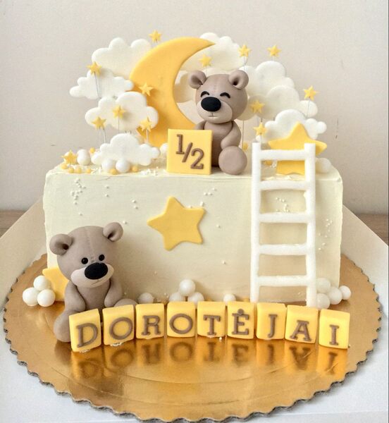 🧸 Adorable Baby Elements – Fondant teddy bears, stars, or clouds for a dreamy effect.